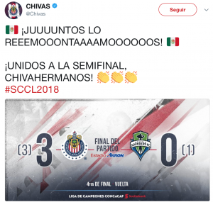 Chivas golea al Seattle Sounders y avanza a semifinales de la Concachampions