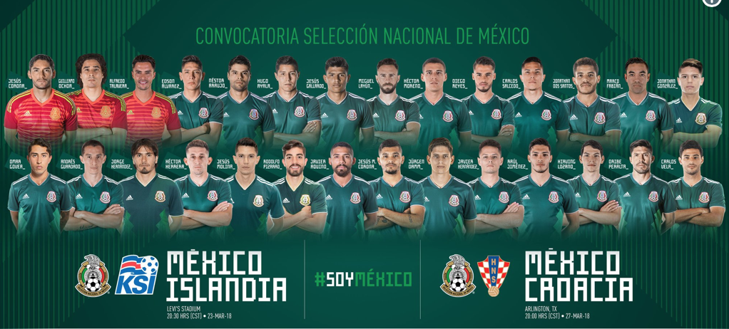 La selección mexicana anunció la lista de jugadores convocados para la primera fecha FIFA del 2018, en el que el tricolor jugará ante Islandia y ante Croacia en los Estados Unidos.