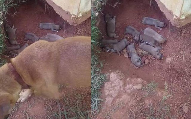 Esta perra escondió a sus cachorros en una zanja para protegerlos
