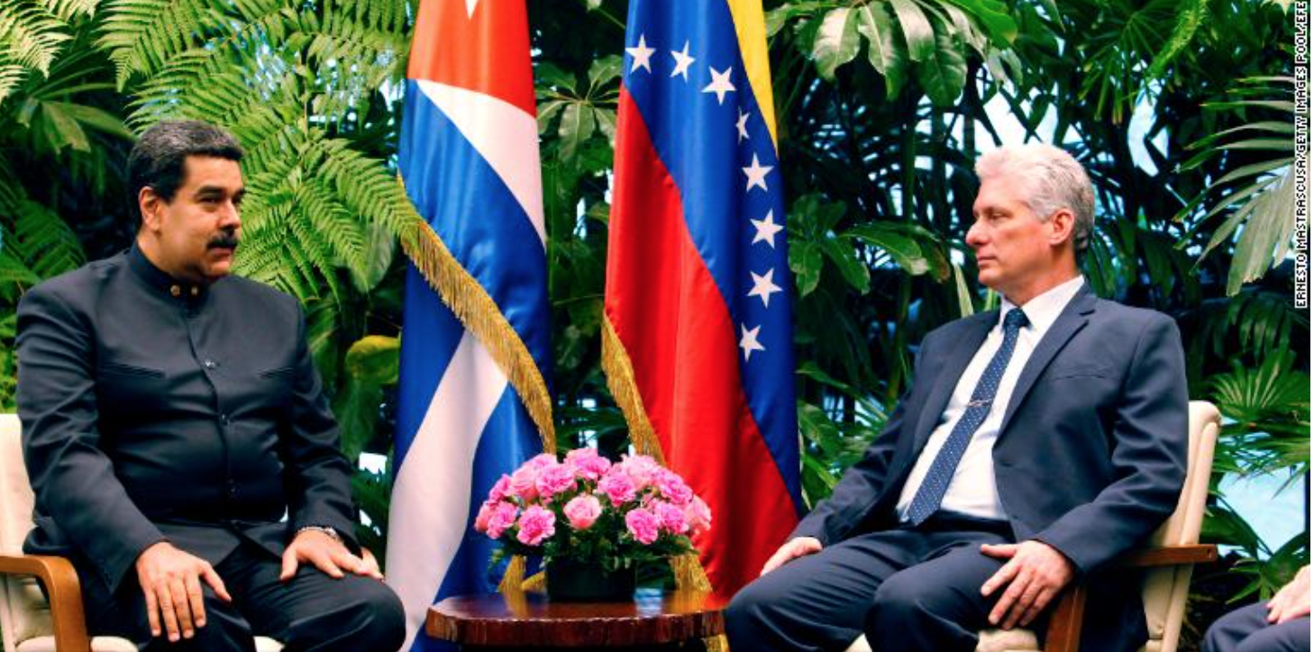 El presidente de Venezuela Nicolás Maduro, fue recibido por el nuevo presidente de Cuba en el Palacio de la Revolución, según un informe de la Agencia Cubana de Noticias. Ambos jefes de Estado pasaron revista a las tropas formadas para la ceremonia para después reunirse a puerta cerrada. Es el primer acto público de Díaz-Canel desde que asumió la presidencia el jueves.