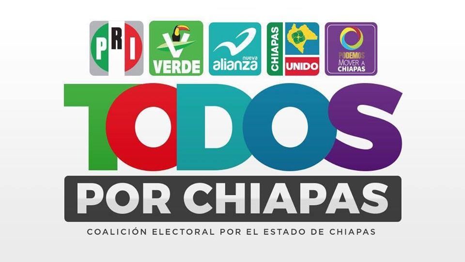 La coalición ‘Todos por Chiapas’, conformada por los partidos Revolucionario Institucional (PRI), Nueva Alianza (Panal), Verde Ecologista de México (PVEM), y los locales Mover a Chiapas y Chiapas Unido, se fracturó luego que los tres últimos registraron a Fernando Castellanos como candidato a gobernador.