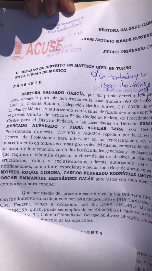 Nestora Salgado presentó una denuncia ante el Poder Judicial de la Federación en contra del candidato José Antonio Meade por difamación.