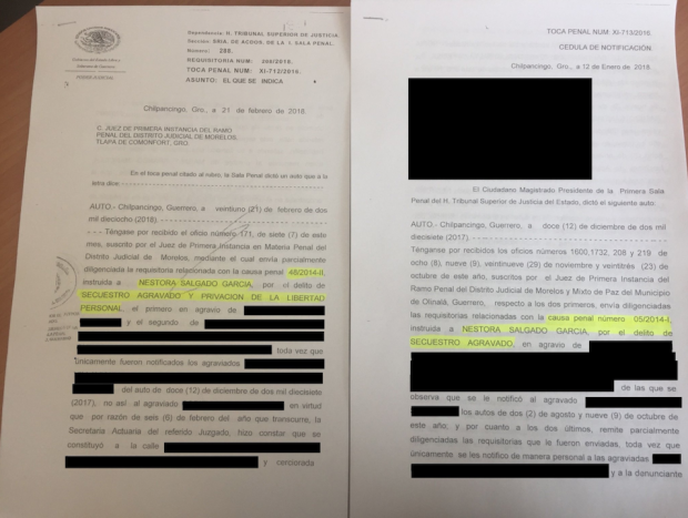 Las presuntas víctimas detrás de dichas causas penales presentaron recursos de apelación el pasado 16 de marzo y estos fueron turnados a la Sala Colegiada del Penal del Tribunal Superior de Justicia; no obstante la Defensa Estratégica de Derechos Humanos que acompaña a Nestora Salgado, estimó que las pruebas de descargo son bastante sólidas para que se desechen por improcedentes.