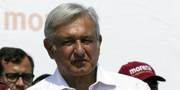 Andres Manuel Lopez Obrador, president of the left-wing political party National Regeneration Movement (MORENA), appears on stage during an event in Nezahualcoyotl, Mexico, on Sunday, Feb. 05, 2017. The politician known locally as Amlo is the early frontrunner in Mexico's 2018 presidential race. Amid a spasm of national rage, voters are increasingly sympathetic to the cries of a radical outsider who promises to end a relationship of "subordination" to the U.S. and rebuild the domestic economy. Photographer: Susana Gonzalez/Bloomberg via Getty Images