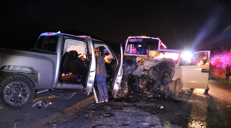 Tras haber quedado prensados en un fuerte accidente frontal, registrado la madrugada de este sábado en la carretera estatal a San Antonio de las Alazanas en el municipio de Arteaga, un hombre perdió la vida esta mañana al no soportar las múltiples heridas, mientras que 3 pasajeros más de los 10 que abordaban el mismo transporte, permanecen hospitalizados en nosocomios privados y la clínica 2 del IMSS.