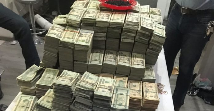 Además había “fajos de billetes de moneda estadunidense por la cantidad de un millón 894 mil 773, en denominaciones de uno, 5, 10, 20, 50 y 100 dólares”, y “un fusil Barret calibre 50 de alta letalidad; 3 armas largas, 3 cortas, 100 cartuchos de diferentes calibres y 7 cargadores”.