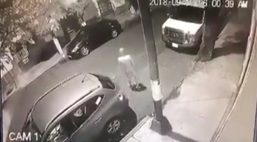 En la grabación se ve al sujeto esperando a lado de un auto, cuando ve que la menor se aproxima, camina hacia ella. Al verlo, la niña intenta evadirlo y camina sobre la banqueta, al tiempo que acelera el paso.