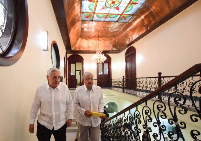 El presidente electo, Andrés Manuel López Obrador, se reunió hoy con el mandatario de Tabasco, Arturo Núñez Jiménez, en las oficinas del palacio de gobierno de Villahermosa.