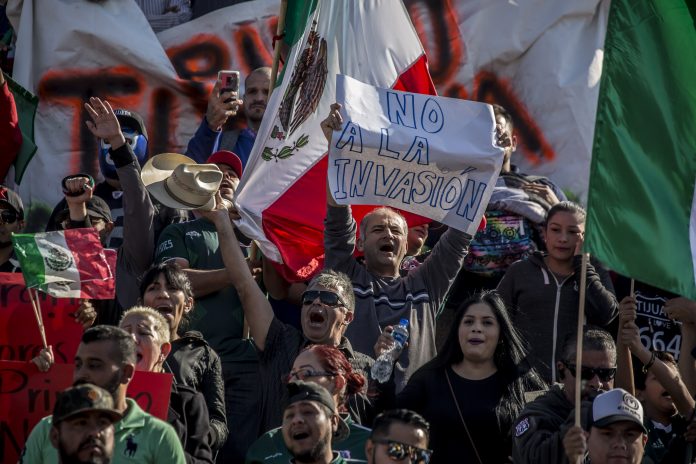 “¡Son invasores! ¡Vienen armados! ¡Lárguense del país”, gritaban al tiempo que se aglomeraban en una emblemática glorieta citadina. En la protesta también participaban algunos residentes de la cercana ciudad estadounidense de San Diego, California.