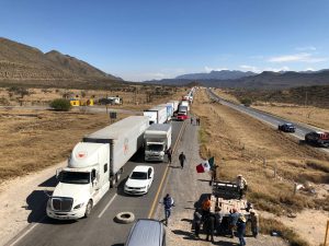 La autopista de cuota Torreón-Saltillo, fue bloqueada el día de ayer en ambos sentidos a la altura del kilómetro 45 a la altura de la caseta de cobro del ejido Puebla. Esto detuvo el flujo de mercancías, afectando además a cientos de automovilistas, varados en una fila que alcanza más de 30 kilómetros.