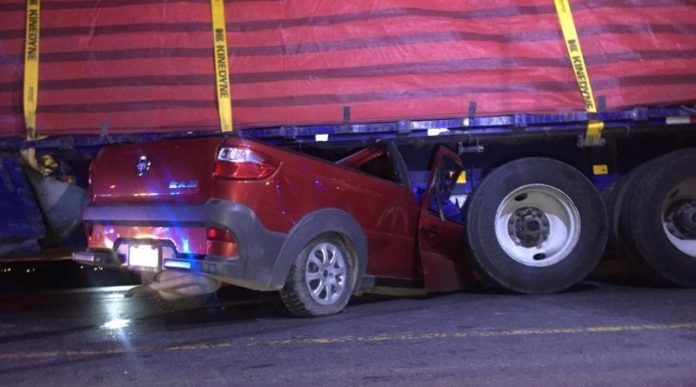 Tres personas perdieron la vida al instante, tras quedar prensadas al interior de la camioneta donde viajaban en la carretera 57 la madrugada de hoy domingo, tras ser impactados por un tráiler que le quitó el derecho de paso, del cual el conductor se dio a la fuga.