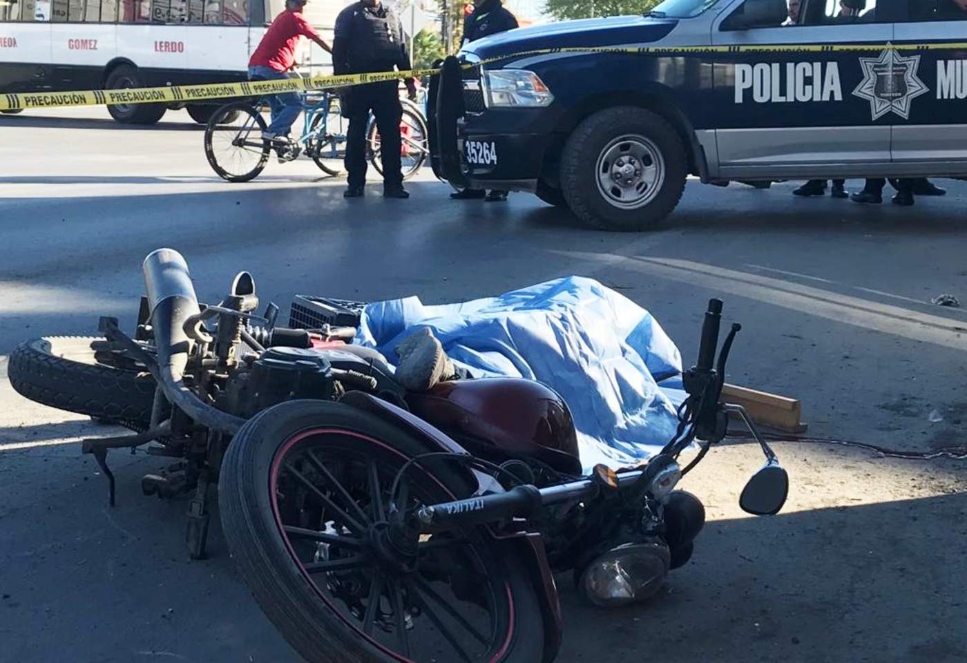 El hoy occiso viajaba a bordo de una motocicleta marca Italika de color guinda con negro, con una caja color azul en la parte trasera.