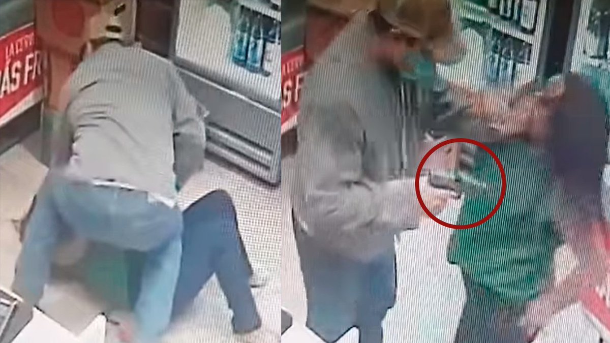Momentos de verdadero terror fueron los que vivió la empleada de un six en Frontera, pues un ladrón intentó asesinarla con una pistola. Foto Captura de Video.