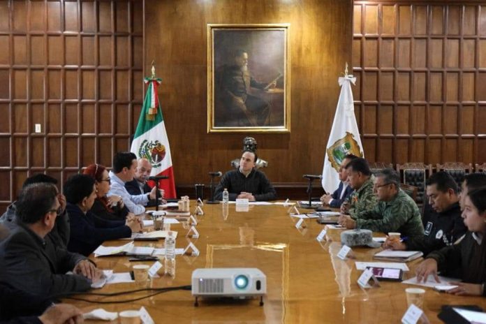 Acompañado por Óscar Pimentel González, secretario de Gobierno; Federico Fernández Montañez, secretario de Seguridad Pública; Gerardo Márquez Guevara, fiscal General del Estado, el Mandatario estatal mencionó que uno de los pilares fundamentales para mantener la seguridad en Coahuila es el trabajo coordinado.