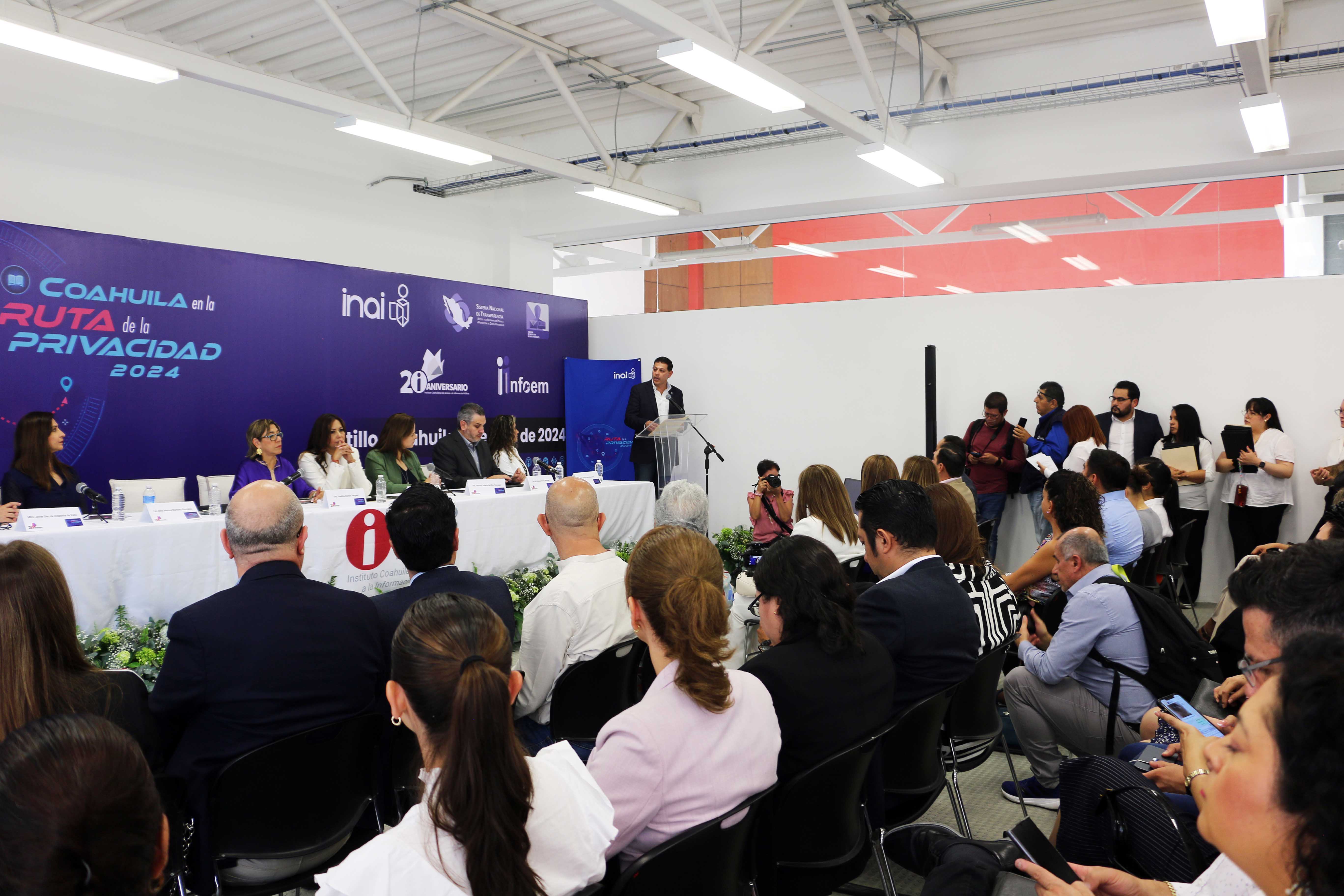 El evento tuvo lugar en el Salón de Usos Múltiples II de Ciudad Universitaria Campus Arteaga, en donde presidieron el evento de manera virtual, el comisionado presidente del INAI, Adrián Alcalá Méndez; de manera presencial y en representación del gobernador de Coahuila, Manolo Jiménez Salinas, la titular de la Secretaría de Fiscalización y Rendición de Cuentas de Coahuila, Elma Marisol Martínez González; las comisionadas del INAI, Josefina Román Vergara y Norma Julieta del Río Venegas.