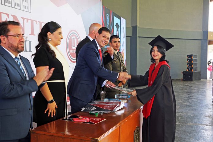 Exhortó a los jóvenes graduados a actuar con honradez, a ser emprendedores y pensar en grande cada día, a transformar a la sociedad aplicando sus habilidades y conocimientos, a ser ciudadanos auténticos y solidarios, por lo que les auguró éxito en sus futuras carreras profesionales.