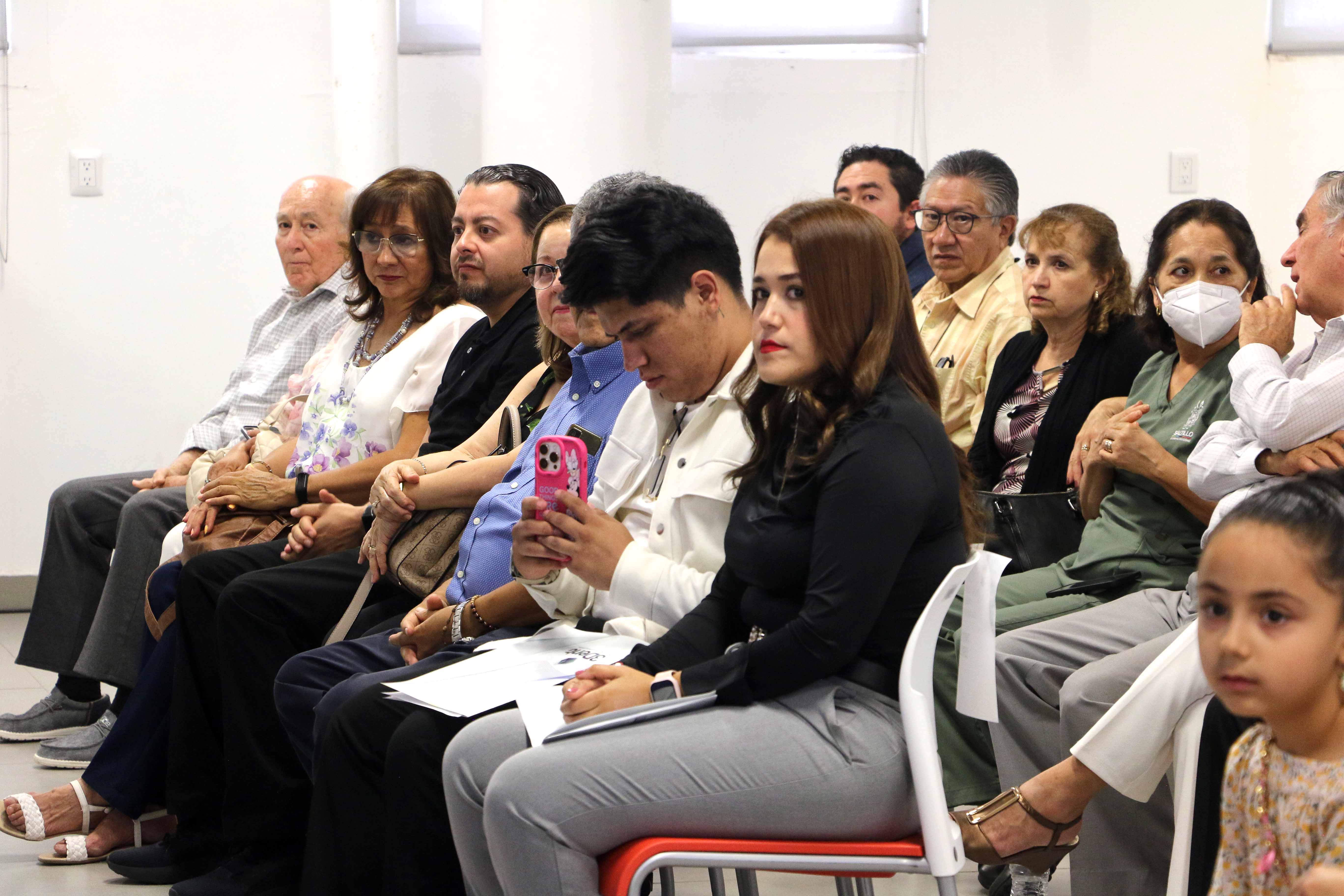 Así como la Dra. Marcela Flores de Martínez, esposa del homenajeado, sus hijos  Gilberto, Marcela y María José Martínez Flores, invitados especiales, comunidad docente y estudiantil de la Facultad y público en general.