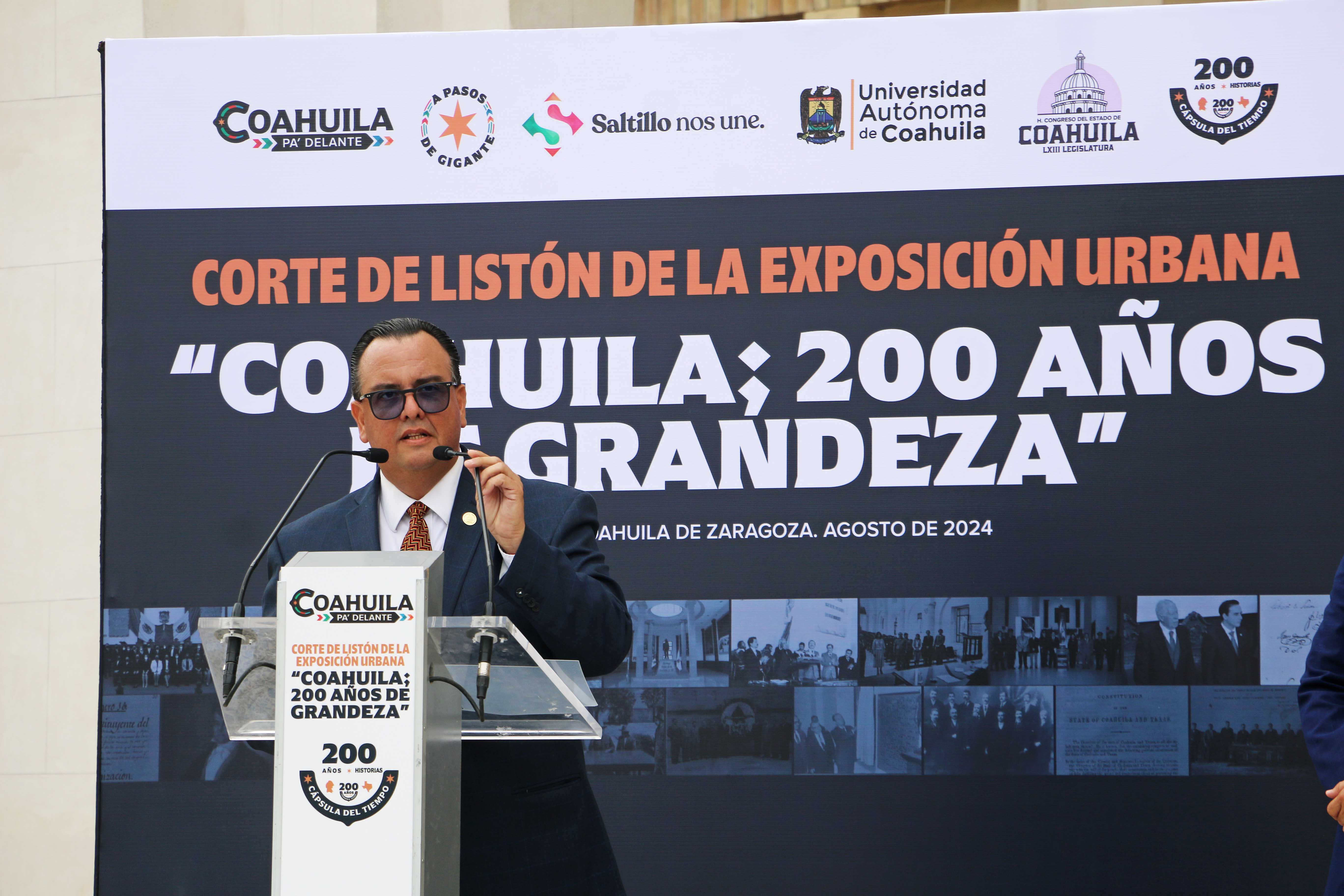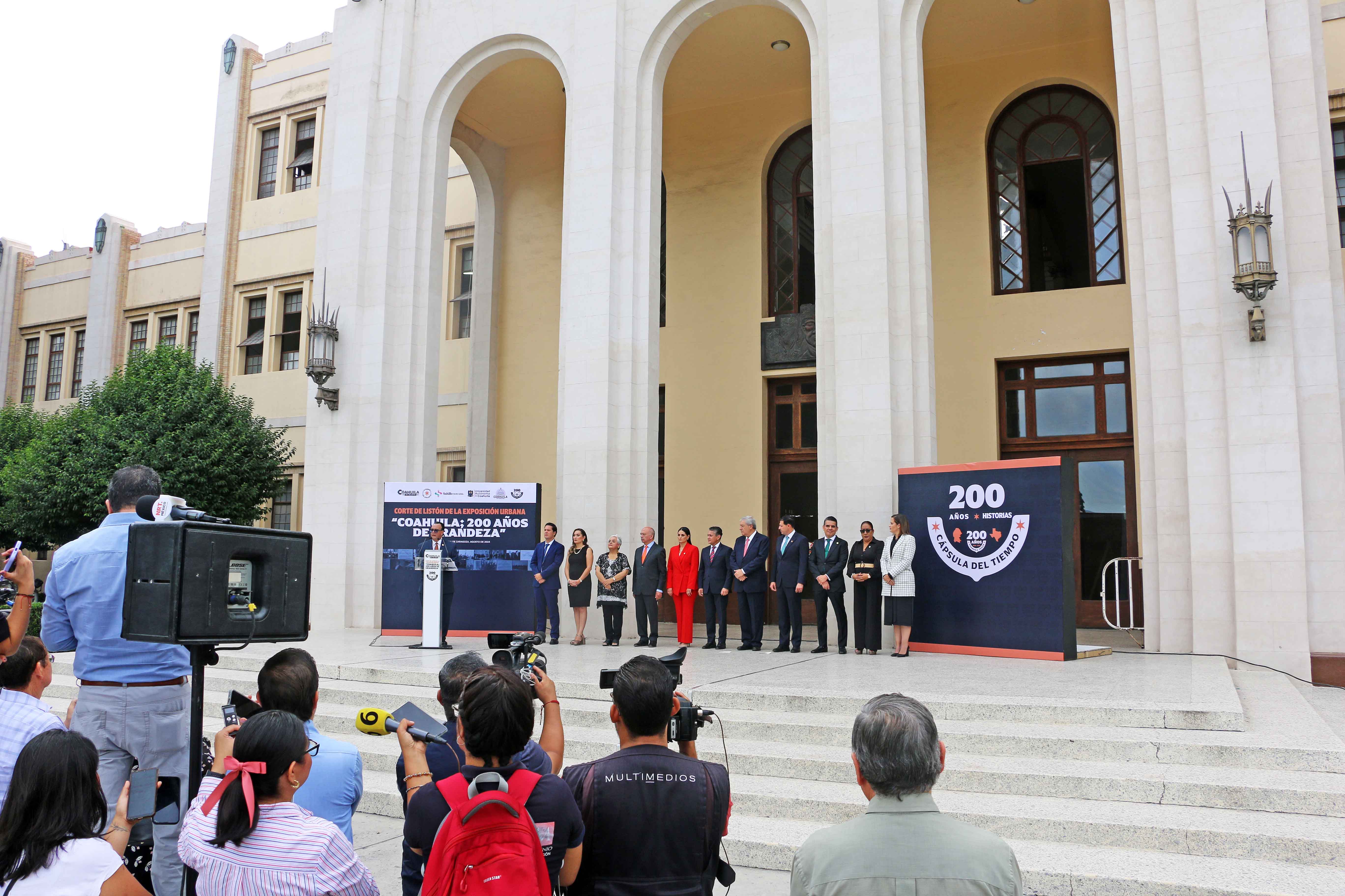 SALTILLO, Coahuila. 15 de agosto de 2024. Los barandales de la Escuela de Bachilleres Ateneo Fuente de la Universidad Autónoma de Coahuila, albergarán del 15 al 31 de agosto de 2024 la Exposición Urbana “Coahuila 200 Años de Grandeza”, presentada por el Gobierno de Coahuila y la LXIII Legislatura del Congreso del Estado, ofreciendo un recorrido visual a través de 200 años de historia que dan testimonio de la evolución política, social y cultural de la identidad coahuilense.
