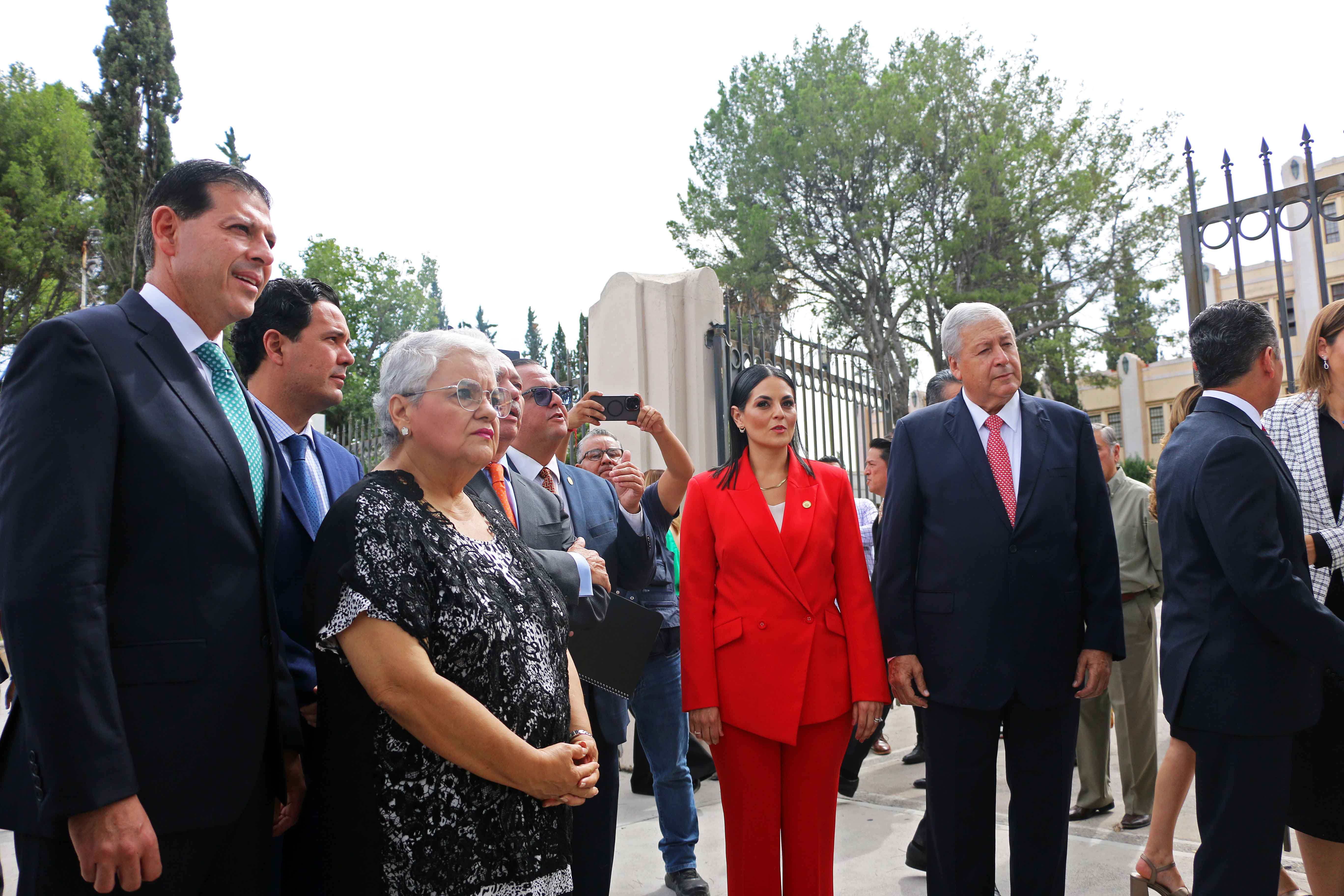 En la ceremonia se contó con la presencia del secretario de Gobierno, Oscar Pimentel González, la diputada presidenta de la Junta de Gobierno del Congreso del Estado de Coahuila, Luz Elena Morales Núñez, el alcalde de Saltillo, José María Fraustro Siller, el rector de la máxima casa de estudios, Octavio Pimentel Martínez, la titular de la Secretaría de Cultura, Esther Quintana Salinas, el magistrado presidente del Tribunal Superior de Justicia del Estado, Miguel Felipe Mery Ayup, el director General de Documentación e Información Legislativa del Congreso del Estado de Coahuila, Ramon Alberto Cortines Boardman e invitados especiales.