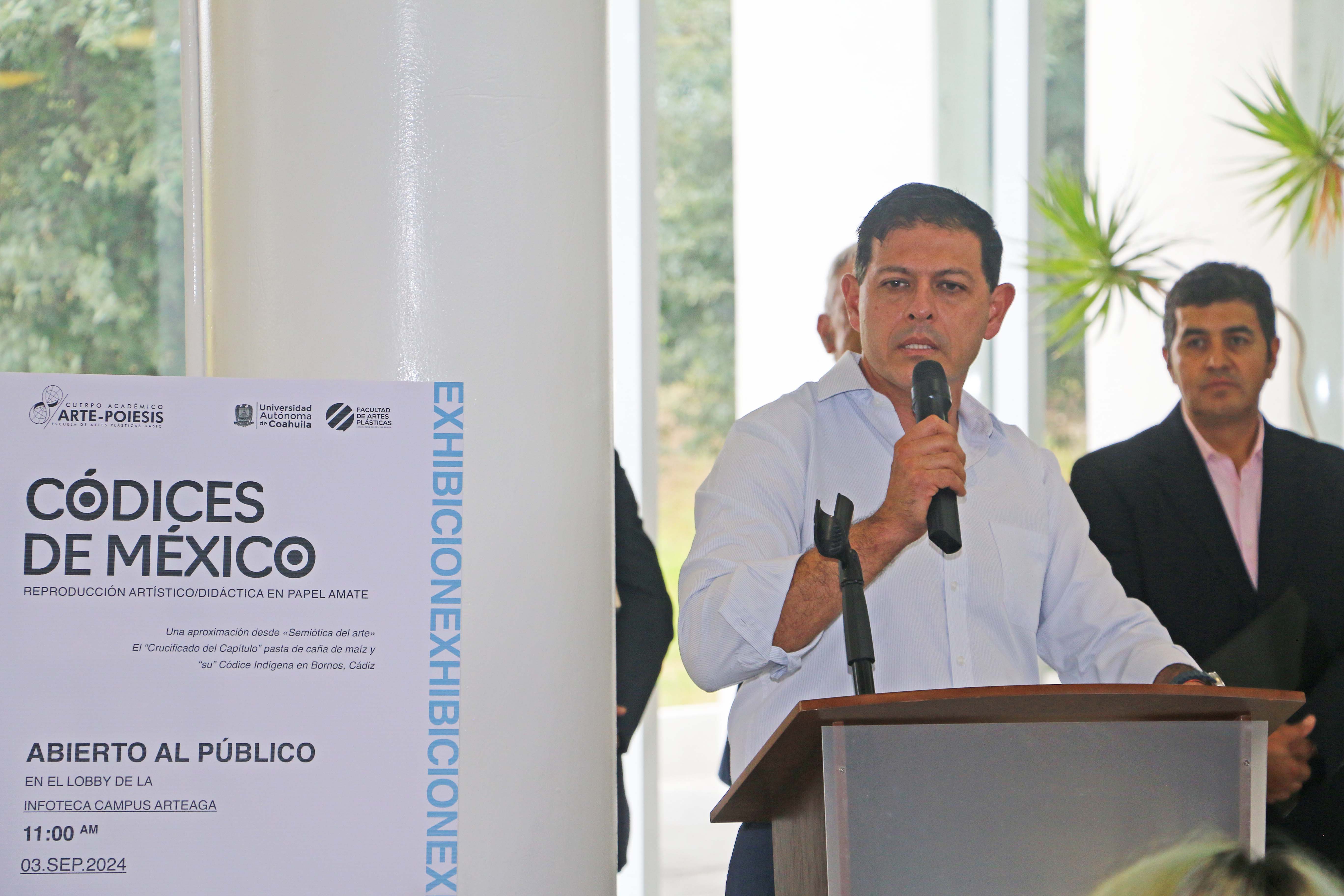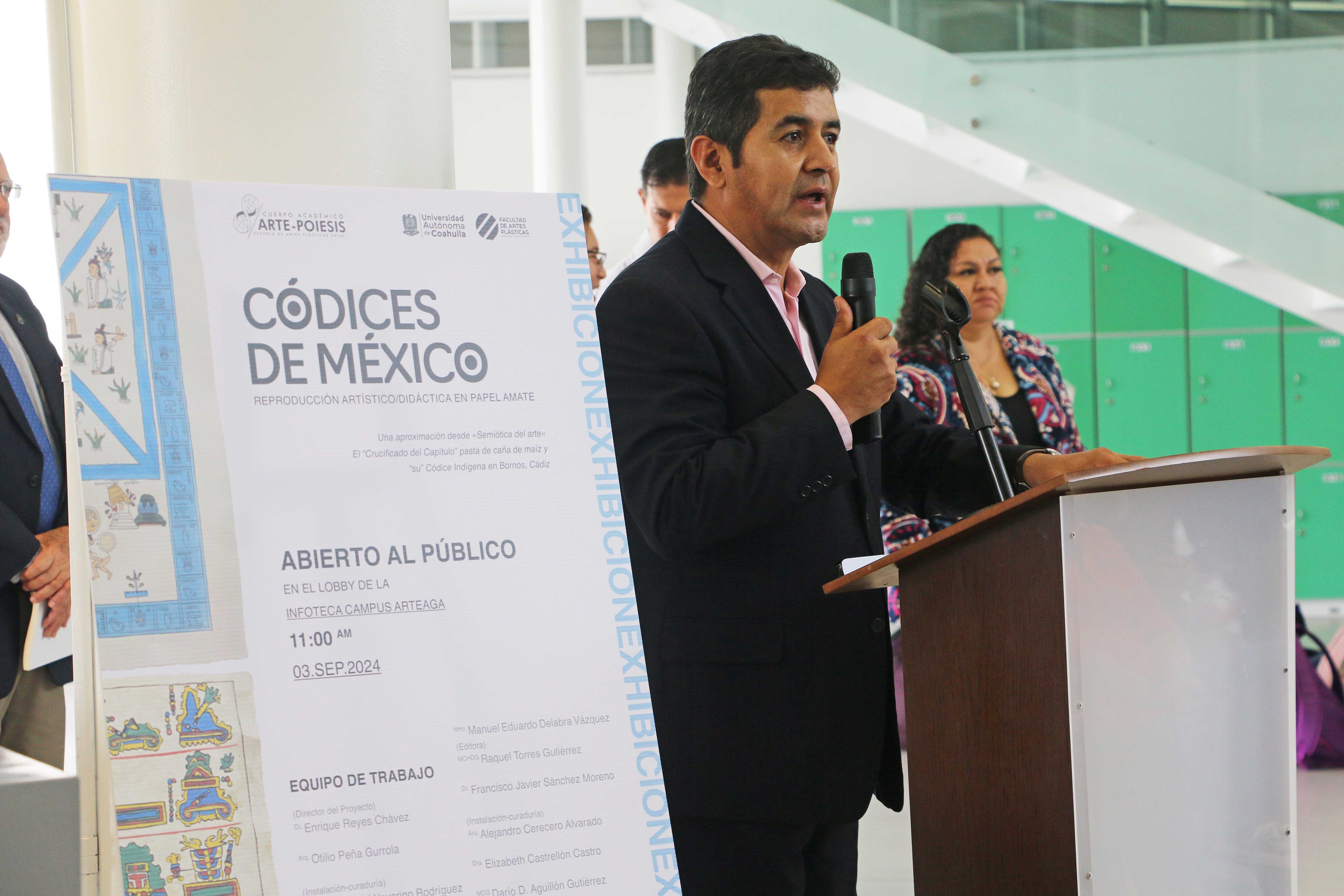 ARTEAGA, Coahuila. 3 de septiembre de 2024. En un esfuerzo por preservar y difundir el patrimonio cultural de México, la Universidad Autónoma de Coahuila, a través de la Facultad de Artes Plásticas y del Cuerpo académico “Arte Poiesis”, inauguró la instalación museográfica titulada “Códices de México y su Reproducción Artística-Didáctica en Papel Amate” en el lobby de la Infoteca del Campus Arteaga.