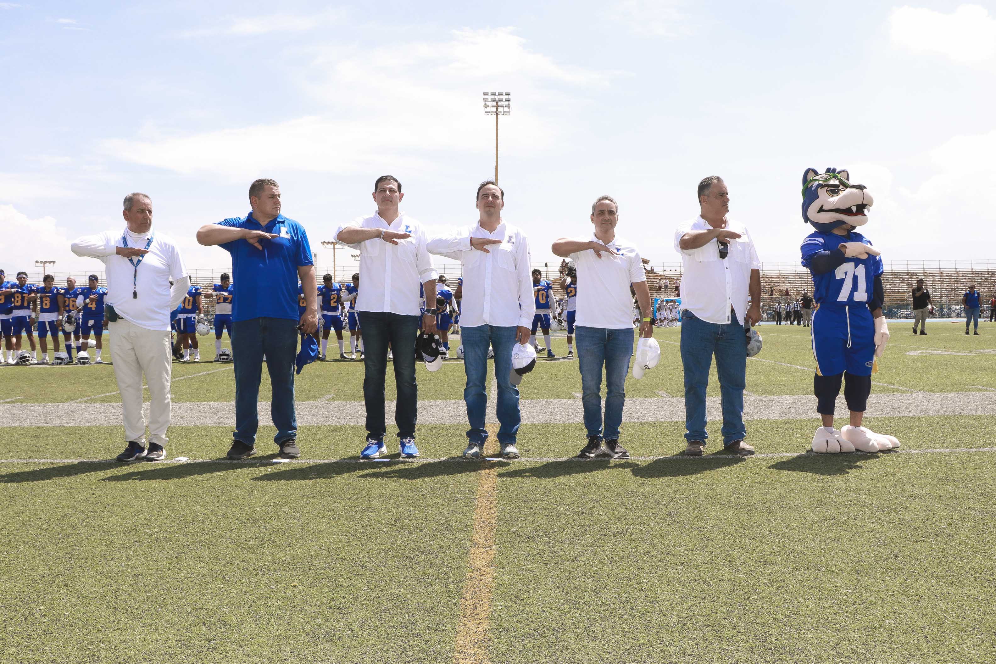 Los Lobos de la UAdeC se enfrentaron a los Búhos del Instituto Politécnico Nacional, el kick off lo dio el mandatario estatal acompañado por el rector de la máxima casa de estudios, Octavio Pimentel Martínez.