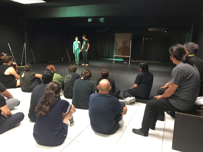 Gracias a la colaboración de la compañía Tropa Cachivaches del director José Sergio Silveti, se llevó a cabo el taller en las instalaciones de la Escuela de Artes Escénicas, el cual concluyó con una puesta en escena y reflexión del proceso.