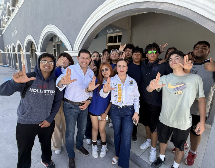 ALLENDE, Coahuila. 12 de marzo de 2025. El rector de la Universidad Autónoma de Coahuila, Octavio Pimentel Martínez, dialogó con la comunidad universitaria de la Escuela de Bachilleres “Dr. y Gral. Jaime Lozano Benavides”, esto durante la reunión “Diálogos que Inspiran”, espacio en el que las y los universitarios conocen los resultados del primer año de esta administración rectoral.