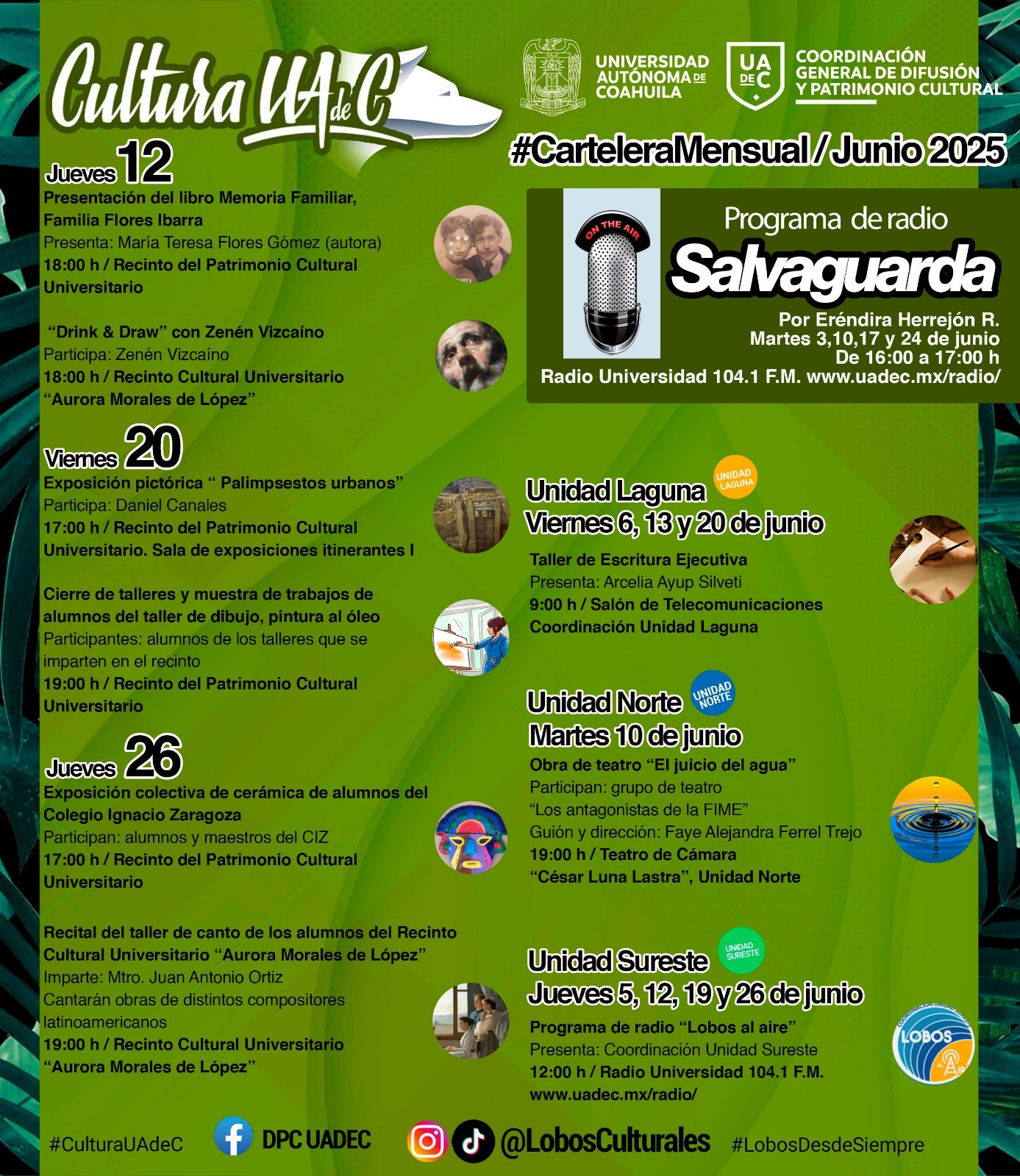 TE INVITA UADEC A LAS ACTIVIDADES CULTURALES DE JUNIO