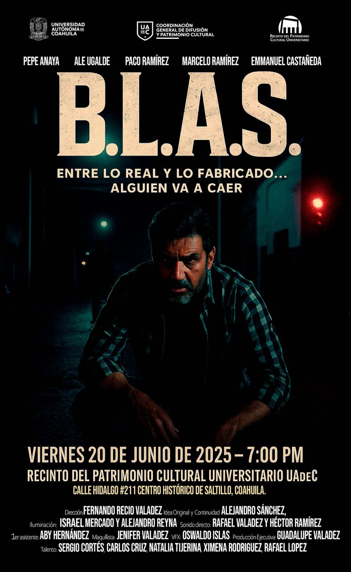 B.L.A.S. está basado en una emblemática Leyenda de Saltillo, es un thriller psicológico con tintes de terror existencial, pero enraizado en la cotidianidad, combina drama familiar, crítica social, tecnología y paranoia digital.