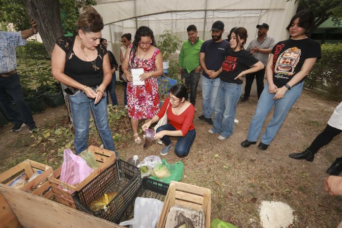 Por su parte, Karina Salazar, ingeniero agrícola y ambiental, egresada de la Universidad Autónoma Agraria Antonio Narro, y representante de la Dirección General de Educación Tecnológica Agropecuaria (DGETA) estuvo a cargo de la capacitación para la preparación de la composta, que es el producto resultante de la fermentación aeróbica o de oxidación biológica controlada de materiales orgánicos.