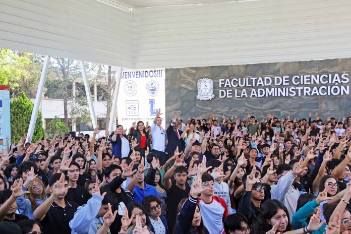 Con el propósito de dar la bienvenida de manera directa a quienes inician su trayectoria universitaria en este semestre, el rector de la Universidad Autónoma de Coahuila, Octavio Pimentel Martínez, visitó la Facultad de Ciencias de la Administración (FCA), donde compartió información sobre la oferta académica, los valores institucionales y las múltiples oportunidades que ofrece la UAdeC.