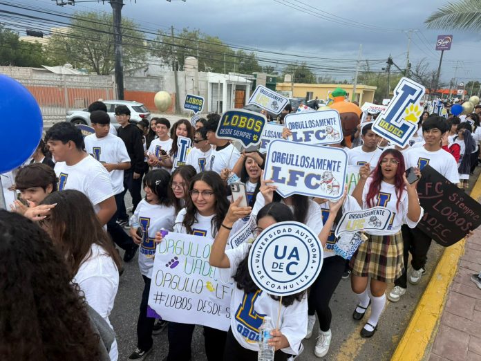 CON DESFILE DAN LA BIENVENIDA A LAS Y LOS LOBOS DE LA UADEC EN MONCLOVA UNIDAD NORTE