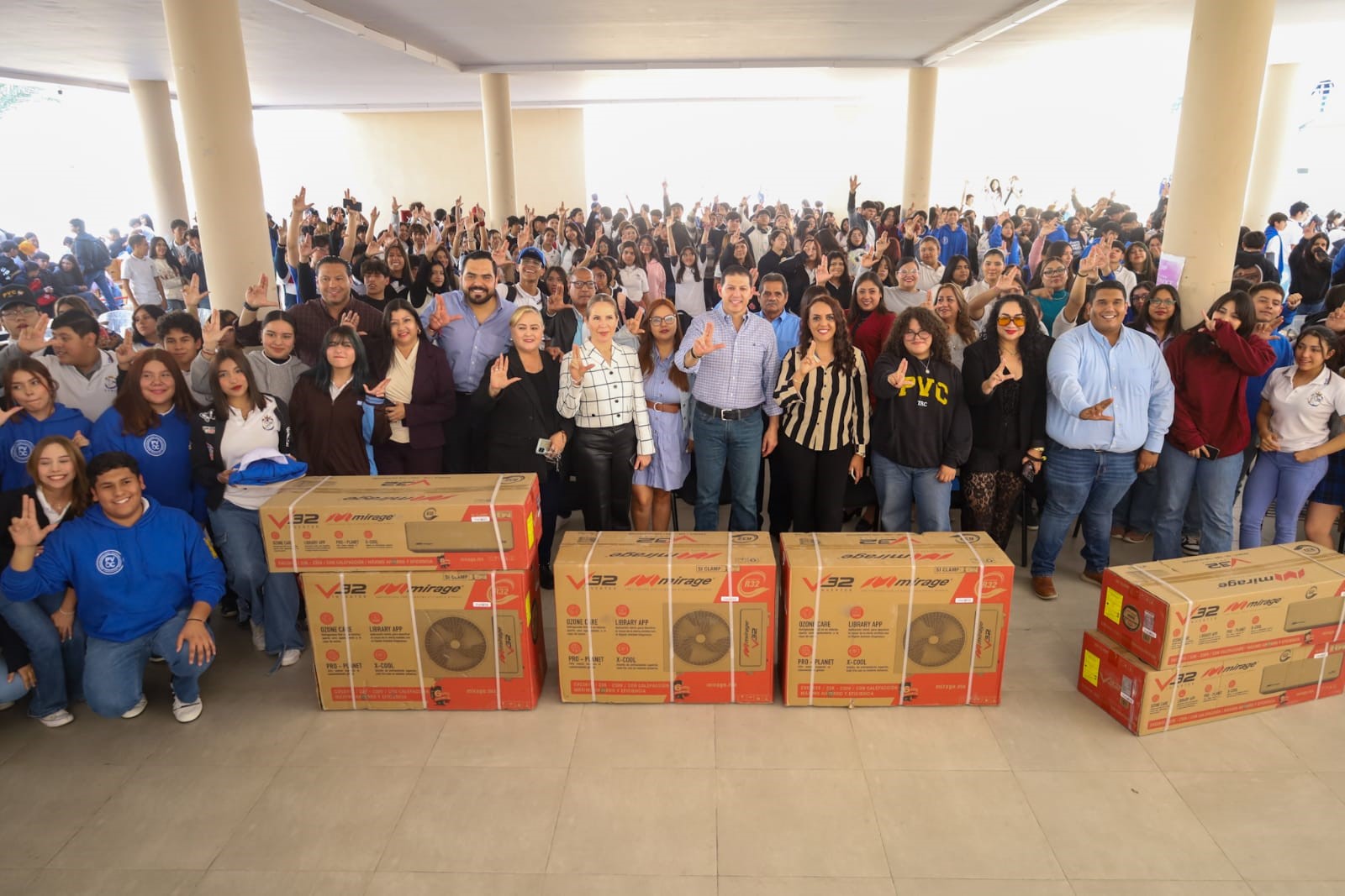 TORREÓN, Coahuila. 5 de noviembre de 2025. En gira de trabajo por la Unidad Laguna, el rector de la Universidad Autónoma de Coahuila, Octavio Pimentel Martínez, entregó 30 equipos de cómputo a la Facultad de Economía y Mercadotecnia (FEM) y 12 equipos de aire acondicionado y 80 mesabancos a la Escuela de Bachilleres “Venustiano Carranza”.